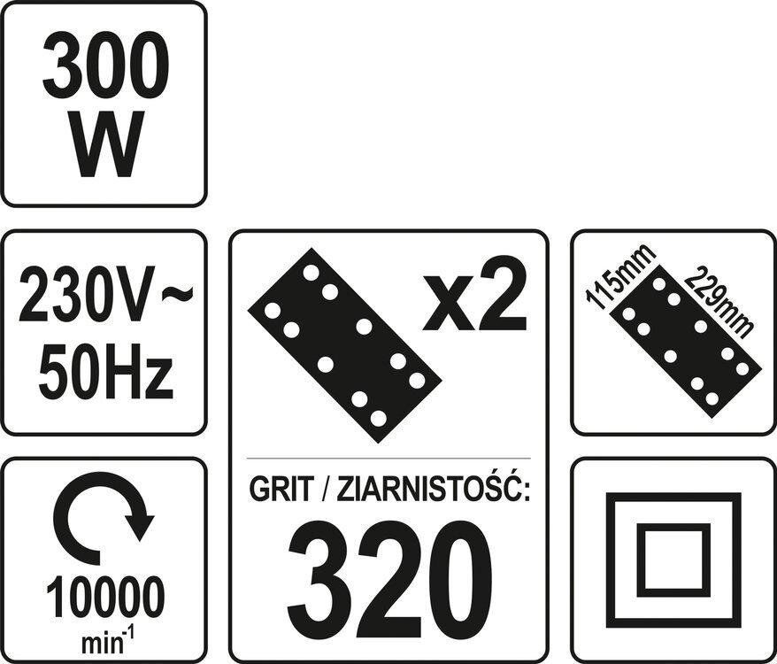 YATO Шліфмашина вібраційна мережева; 230 В, 300 Вт, платформа- 115-230 мм
