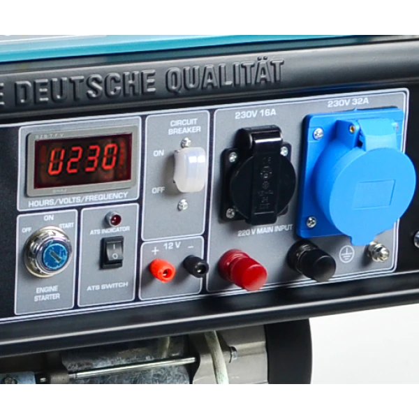 - Вага 87.8 кг Напруга живлення 230 В Потужність 18 к.с. (13.24 кВт) Габаритні розміри 680х545х550 мм Комплектація блок автоматики ATS, інструкція з експлуатації, гарантійний талон Тип двигуна бензиновий, 4-тактний Час роботи 7 год Ступінь захисту IP23M Система охолодження повітряна Кількість циліндрів 1 Об'єм оливного бака 1.2 л Тип альтернатора синхронний з мідною обмоткою Максимальна вихідна потужність 8000 Вт Номінальна вихідна потужність 7500 Вт Кількість фаз 1 Об'єм двигуна 440 куб.см Об'єм паливного бака 25 л Тип пуску ручний / електро / авто Марка двигуна KS 460 Стабілізація напруги інтелектуальна система AVR Розетки 1х16 А, 1х32 А, є вихід 12 В (8.3 А) -