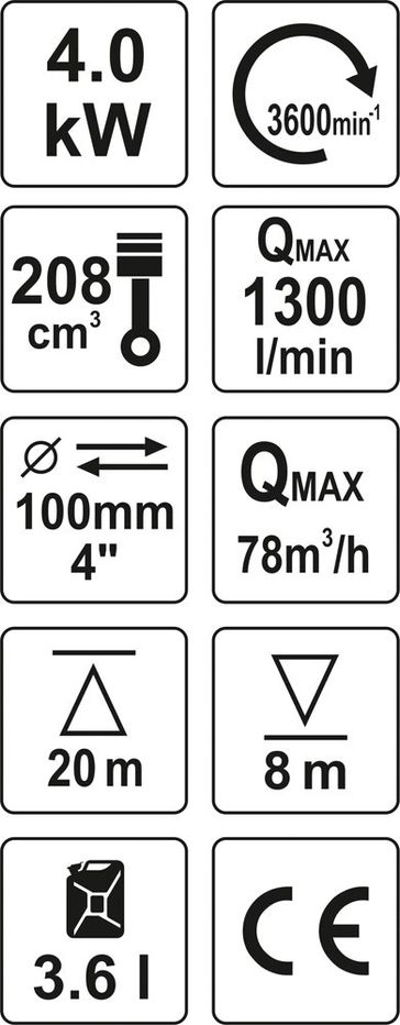 Мотопомпа YATO 4" 7,7 к.с. 96м³/год