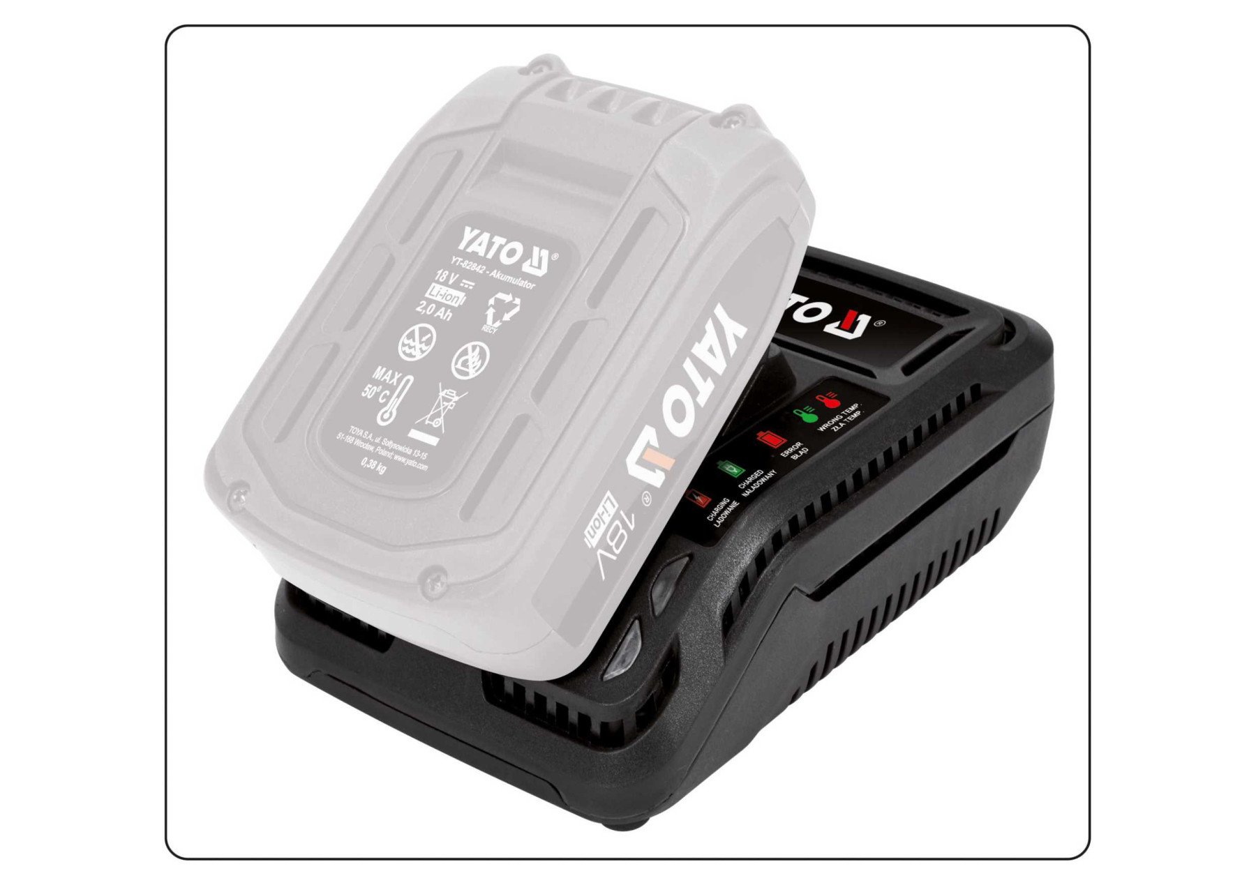 YATO Зарядний пристрій YATO до акумуляторів Li-Ion 18 В від 230 В | YT-82848