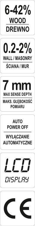 YATO Вологомір електронний для деревини і будматеріалів межами- 0,2-42% з макс. глибин. чутлив.- 7мм