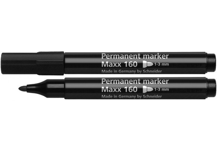 Маркер перманентный SCHNEIDER MAXX 160 подходит для всех видов поверхностей. Ширина линии 1-3 мм. Чернила без резкого запаха, быстро сохнут, имеют яркий, насыщенный цвет. Не содержит вредных веществ. Увеличенный объем резервуара для чернил.система "CAP OFF INK"" - маркер сохраняет пишущие свойства без колпачка до 14 дней.