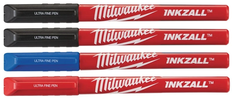 Ручки INKZALL Fine Tip Кольорові (4шт) Тонке перо Стійка до забруднення та висихання Кліпса на ковпачку для носіння У упаковці 4 шт. Застосування: маркування етикеток для електропроводки, додавання коментарів до архітектурної документації Комплект поставки: Ручка із надтонким пером Milwaukee INKZALL (Синій) - 1 шт Ручка із надтонким пером Milwaukee INKZALL (Червоний) - 1 шт Ручка із надтонким пером Milwaukee INKZALL (Чорний) - 2 шт Постачається в блістері Суббренд INKZALL Кількість (шт) 4 Товщина стрижня, мм 0.6 Колір чорний/червоний/синій