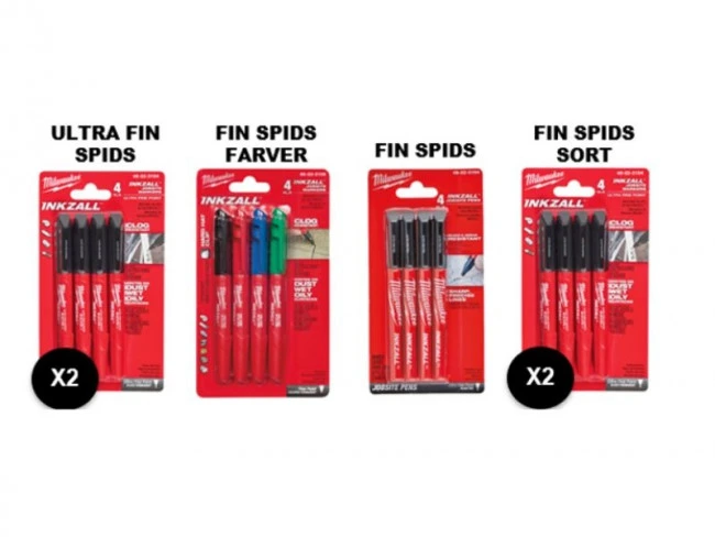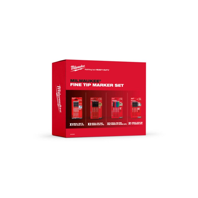 Набір маркерів INKZALL™ MILWAUKEE містить 24 маркери. 4 маркери Milwaukee INKZALL Fine Tip - чорні 4 маркери Milwaukee INKZALL Ultra Fine Tip - чорні 10 маркерів Milwaukee INKZALL Fine Point - чорні 2 маркери Milwaukee INKZALL Fine Point - зелені 2 маркери Milwaukee INKZALL Fine Point - сині 2 маркери Milwaukee INKZALL Fine Point - червоні Кожен маркер має конструкцію Anti-Roll, що означає, що він не скочується з поверхні. Акриловий наконечник ідеально підходить для шорстких поверхонь, таких як OSB та бетон. Маркери продовжуватимуть писати після 72+ годин без кришки. Ідеально підходить для використання на бетоні, дереві, металі, фанері, OSB, пластику. Їх можна використовувати на вологих, маслянистих, запорошених, іржавих, забруднених поверхнях зі швидким часом висихання – зменшення розмазування слідів на ПВХ, металевих поверхнях. Тонкий дизайн корпусу дозволяє використовувати маркер в обмежених просторах, ковпачок легко відкривається однією рукою, а кліпса для шолома дозволяє прикріпити маркер до кепки, штанів, спецодягу на будівельному майданчику, а також має отвір для шнурка.