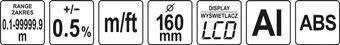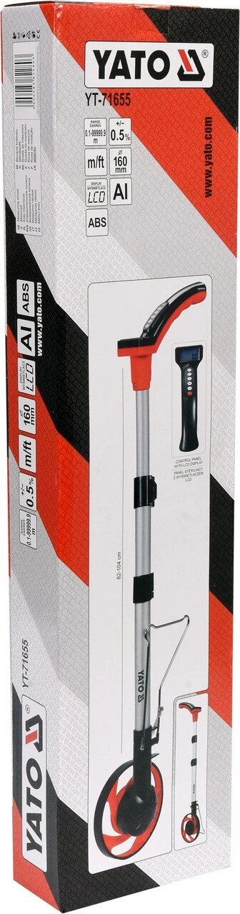 Измерительное колесо, одометр, одно колесо для измерения расстояний, диапазон измерения от 0,1 до 10000 м. Электронный счетчик, диаметр колеса 160 мм, телескопическая ручка. Корпус изготовлен из ABS-пластика, устойчивого к механическим повреждениям. Упакован в сумку. Питание от двух батареек ААА 1,5 В.