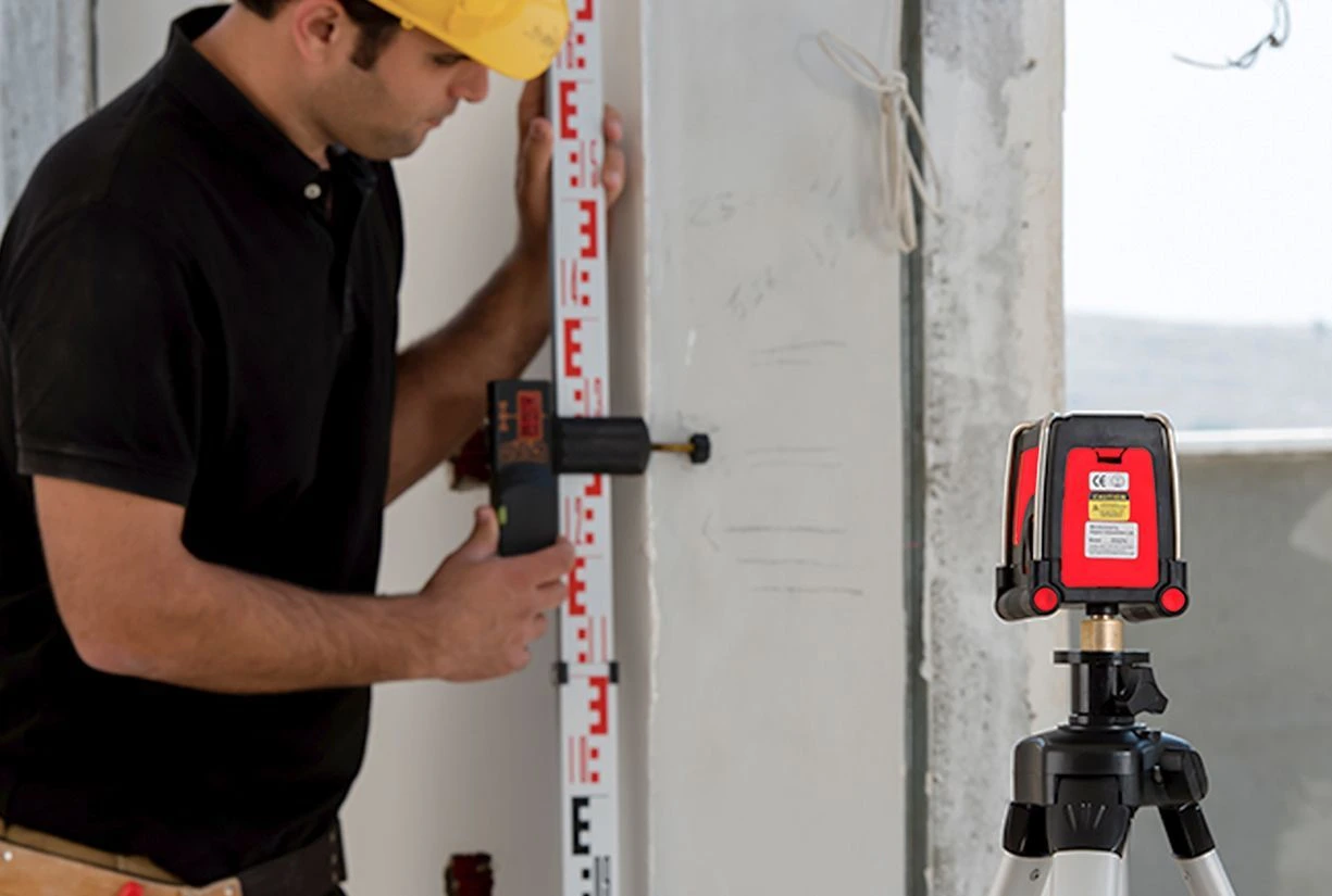 Профессиональный самовыравнивающийся лазерный уровень для внутренних и наружных (с приемником-детектором) работ.