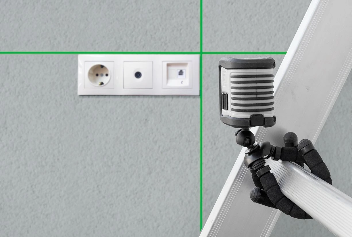 Технические характеристики Проецируемые лазерные линии вертикальная и горизонтальная Дальность работы 15 м Точность ± 0,4 мм / м Угол развертки лазерной плоскости 100° Диапазон самовыравнивания ± 3° Ширина лазерного луча 2,5 мм ± 0,5 мм на расстоянии 5 м Длина волны лазера 520 нм ± 10 нм Класс лазера II Питание 2 батарейки типа AA (входят в комплект) Автономность 12 часов непрерывной работы Рабочая температура от -10°С до +45°С Температура хранения от -20°С до +60°С Защита от влаги и пыли IP54 Резьба для установки на штатив 1/4" Размеры 76 x 65 x 50 мм Вес (с батарейками) 180 г