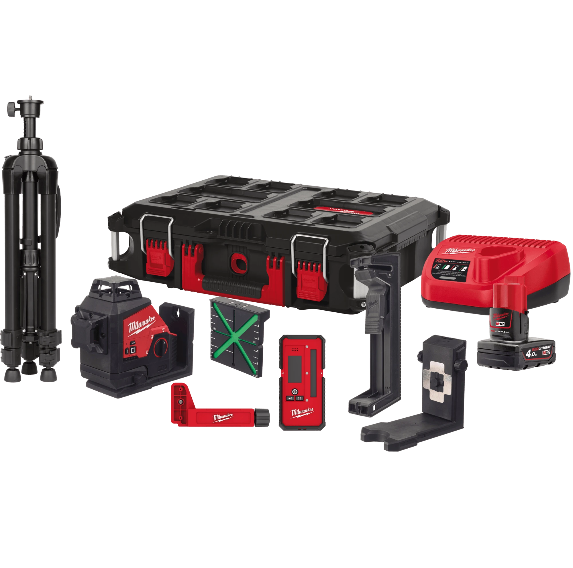 M12™ мультилінійний лазерний нівелір з 3 лініями по 360° із зеленим променем забезпечує широкий функціонал, горизонтальну та 2 вертикальні лінії, вирівнювання, побудова прямих кутів, перенесення крапок. Все це дозволить швидко розмітити великі простори одним інструментом