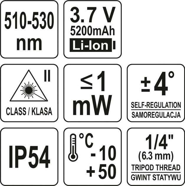 YATO Нівелір лазерний самонівелюючий : 12 променів, точність- ±3 мм/ 10 м, верт./гориз. промені