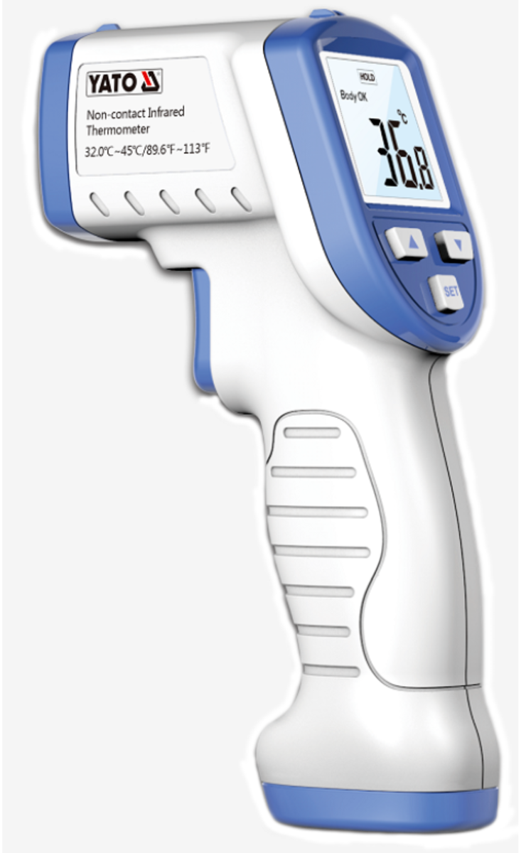 YATO Термометр безконтактний інфрачервоний YATO: дистанція- 2-5 см, t=32-45°С, автовимк.- 15 с, 2 x 1.5 В | ZP-0149