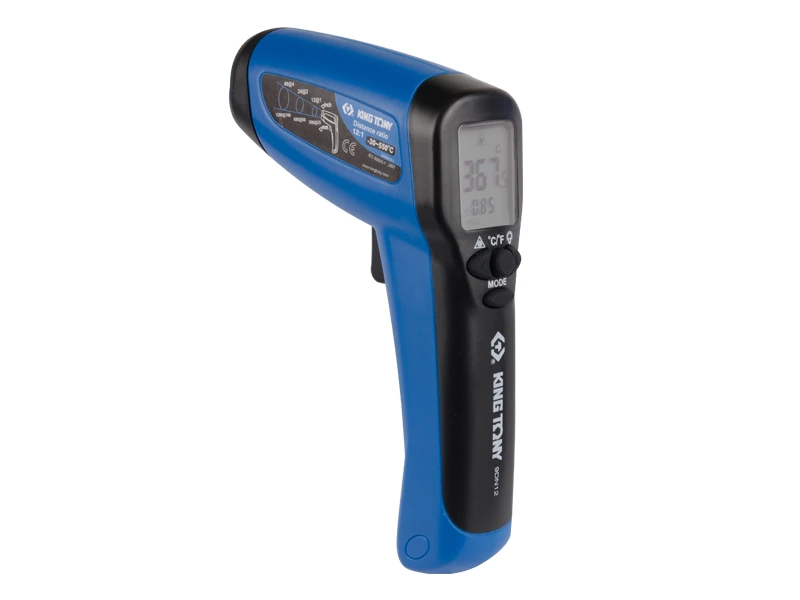 Вимірювання температури поверхні об'єктів безконтактним способом. Галузь застосування: Станції технічного обслуговування (СТО), автосервіси, автомайстерні. особливості: • Безконтактний спосіб вимірювання температури; • Точний вибір ділянки вимірювання температури завдяки інфрачервоній точці (ІЧ) позиціонування; • Індикація температури у градусах Цельсія (°C) та Фаренгейта (°F); • Вимірювання температури поверхні будь-яких матеріалів; • Підсвічування дисплея; • Міцний корпус із пластику марки ABS. Технічні характеристики: Діапазон вимірюваної температури -30 ~ 550 ° C (-22 ~ 1022 ° F) Робоча температура 0~50°C Точність вимірювання 0,1°C (0,1°F) Похибка вимірювання ±2,5% або 3°C Коефіцієнт випромінювання дискретний (0,85/0,90/0,95) Відношення відстані до розміру вимірюваної ділянки 12:1 Тип індикації РК дисплей Підсвічування є Живлення 9V (батарея входить до комплекту) Автоматичне вимкнення 15 секунд Тип лазерного покажчика клас II (габаритні розміри 193 x 47 x 126 мм) Вага 0,313 кг Температурний діапазон: -30~550°С (-22~1022°F) Робоча температура: 0 ~ 50°С Роздільна здатність: 0,1 ° С / 0,1 ° F Точність: ±2,5% АБО 3°С Коефіцієнт випромінювання: вибирається (0,85/0,90/0,95) Співвідношення відстані до точок: 12: 1 Автоматичне Вимкнення: 15 секунд Лазерна указка: лазер класу 2