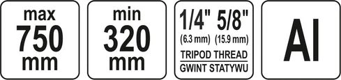 Алюминиевый штатив для лазерного уровня YATO YT-30471. Ножки с 2 выдвижным сегментом с резиновыми ножками. Блокировка с помощью винта. Крепление - штифт с резьбой 5/8', переходник 5/8' x 1/4' в комплекте.