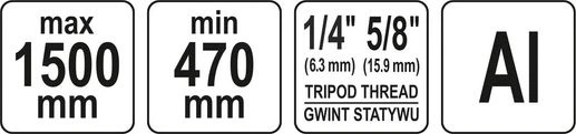 YATO Штатив тринога телескоп (3 секціі) . кріплення 5/8", з штангою 38см. H= 47-150 см. алюмінієвий