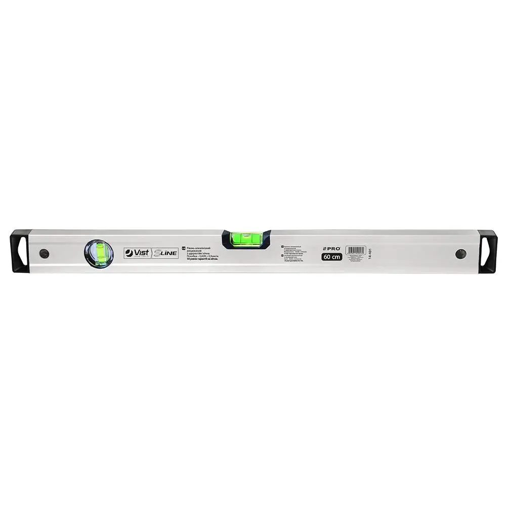 Рівень анодований алюмінієвий, тип 'Профі', - це професійна лінійка рівнів для високоточних робіт. Профіль рівня виготовлений з високоміцного анодованого алюмінію. Рівень має 2 спиртових вічка, які дозволяють проводити вимірювання у площинах з ухилами в 0 ° та 90 °. Товщина металу профілю рівня 1,5 мм. Точність рівня складає 0,029 °. Спиртові вічки виготовлені з міцного ударостійкого матеріалу. Гарантія на вічка - 10 років. Дані рівні з упевненістю можна використовувати в будівельних бригадах та інших роботах, які пов'язані з максимальною точністю при вимірах. Головне в рівні - це його точність, яку можна перевірити в такий спосіб: 1) Знаходимо рівну площадку, на яку можна помістити рівень 2) Прикладаємо рівень до поверхні, бульбашка повинна показувати рівно посередині (при можливості відзначаємо зону, де встановлювали рівень). 3) Розвертаємо рівень на 180 ° і прикладаємо на теж місце, бульбашка в колбі повинні показати ідентичні результати. Вічки, котрі відповідають за вертикаль та горизонталь, перевіряємо по такому прикладу.