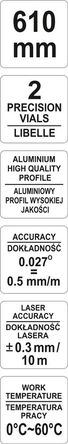 YATO Рівень електронний : L= 610 мм. 2 капсули, лазерний промінь, дисплей (3mm/10m), алюмінієвий