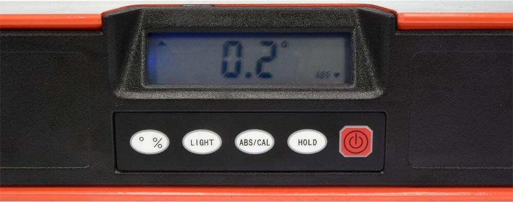 Рівень YATO YT-30400 – електронний алюмінієвий рівень з вбудованим лазером для виконання точних вимірювань під час будівельних, ремонтних і декоративних робіт. Параметри вимірювань зчитуються на великому РК-екрані з підсвіткою. Завдяки вбудованому профілю із двох флаконів вимірювання можуть виконуватися традиційним способом. Має також функції зберігання результату вимірювання та звукової сигналізації.