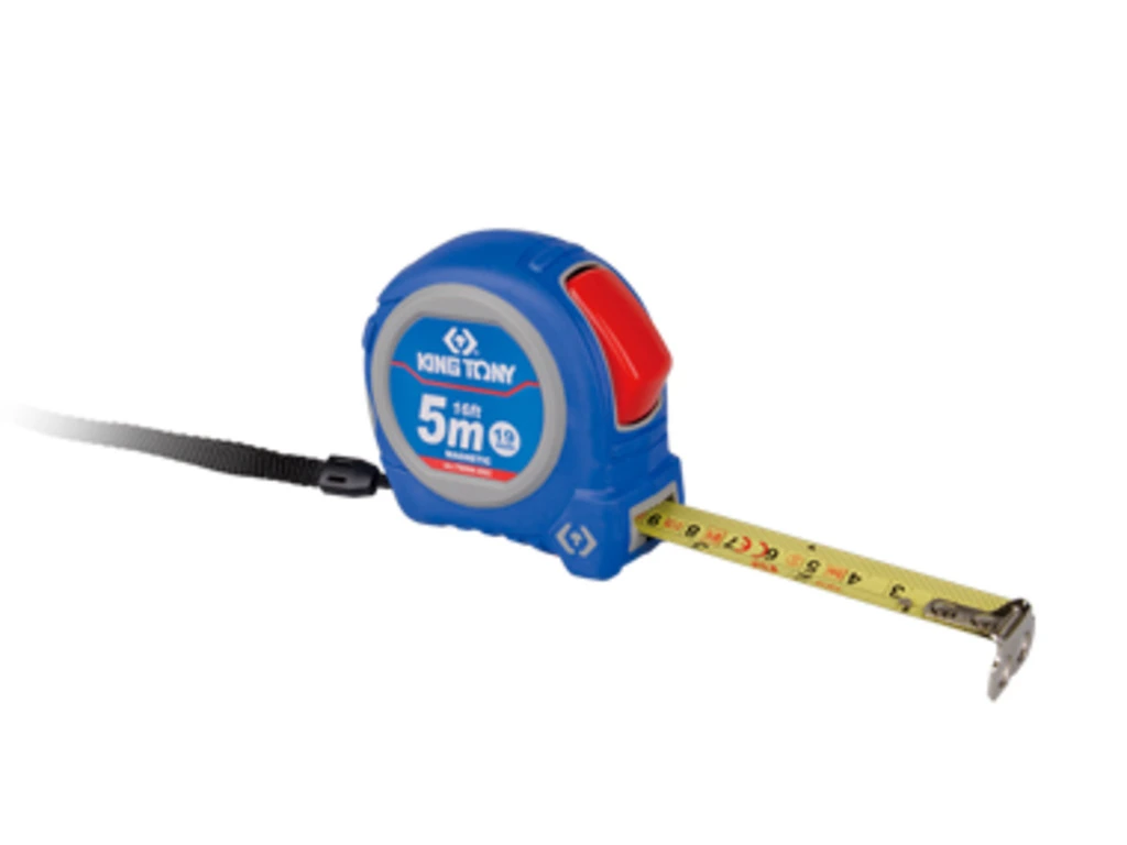 Рулетка 3м з магнітним гачком Автоблокування вимірювальна стрічка Дві кнопки пошуку Нейлонове покриття 3 леза заклепки Ергономічний та удароміцний корпус з ABS + TPE Спеціально позначені червоним кожен 10 см шкали Затвердження стандарту точності ЄС Class II Магнітний гак
