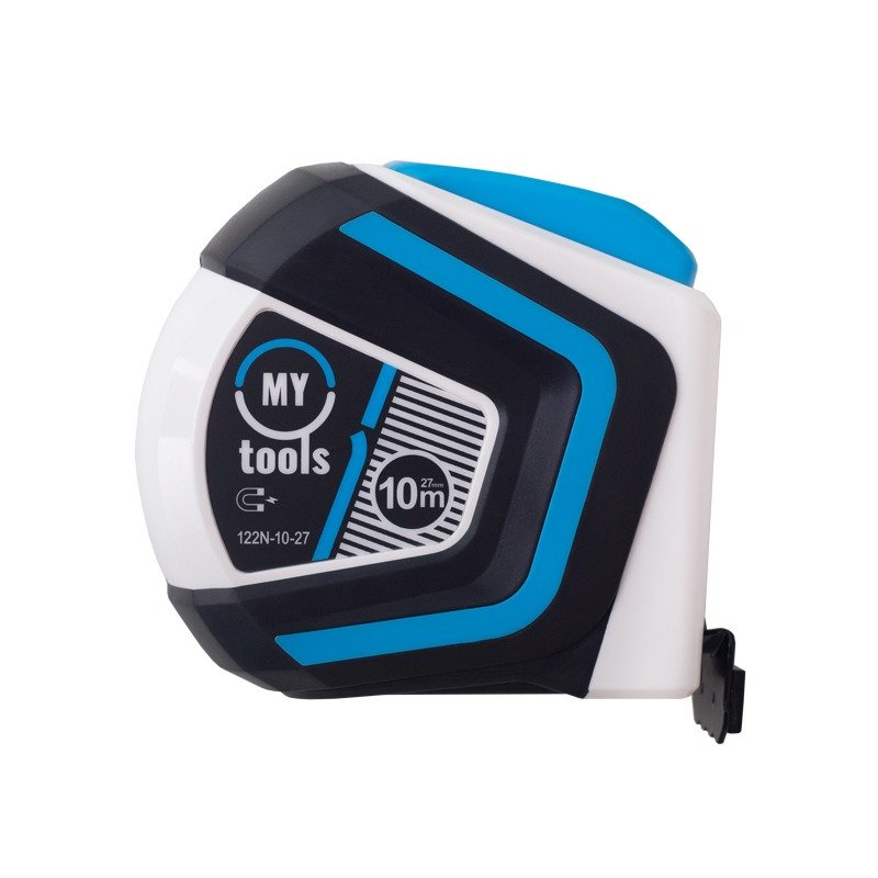 Полотно шириною 27мм дозволяє робити горизонтальні заміри до 2,9 м без злому. Покриття Nylon надійно захищає маркування полотна від стирання. Гачок з надпотужним магнітом, що полегшує роботу з металевими матеріалами та конструкціями. Автоматичний фіксатор полотна з силіконовою накладкою, що запобігає сковзанню. Такі характеристики збільшують термін експлуатації рулетки.