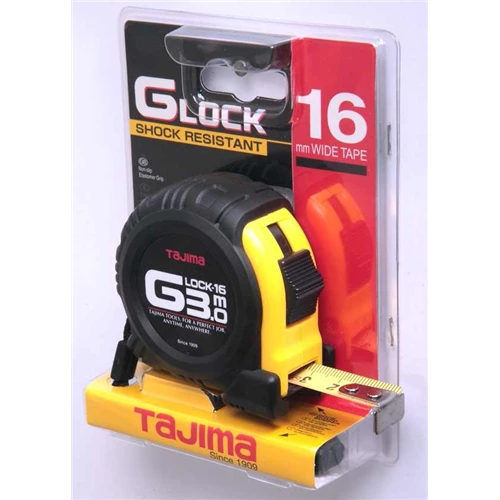 Серия рулеток TAJIMA G-LOCK - это классический ударопрочный измерительный инструмент, предназначен для тяжелых условий эксплуатации на строительной площадке. Рулетка оснащена прочным металлическим сердечником, к которому жестко закреплена пружина, что представляет собой надежный механизм вытягивания и сматывания ленты. Корпус инструмента изготовлен из армированного пластика, а также дополнительно помещен в эластомерный чехол, который обеспечивает лучшие вибро- и ударопоглощающие свойства. Места рулетки, наиболее подверженные к повреждениям при падении, защищены более толстым слоем резины. Измерительная лента в рулетках всегда без труда извлекается на всю заявленную длину, да еще и с небольшим запасом, который сохраняет пружинный механизм от случайной поломки. Лента выполнена из качественной эластичной стали, которая многократно покрыта краской. Вся шкала разметки чрезвычайно четкая и читабельная, а также нанесена с обеих сторон для более удобного использования. Внешне лента покрыта матовым нейлоновым слоем с антибликовым эффектом, что обеспечивает лучшие показатели износостойкости и превосходную видимость при считывании измерений. Металлический захват на конце ленты закреплен 2-мя заклепками. Дополнительно рулетки оснащены стальной скобой для крепления на пояс или карман и прочным ремешком для подвешивания на запястье во время работы.