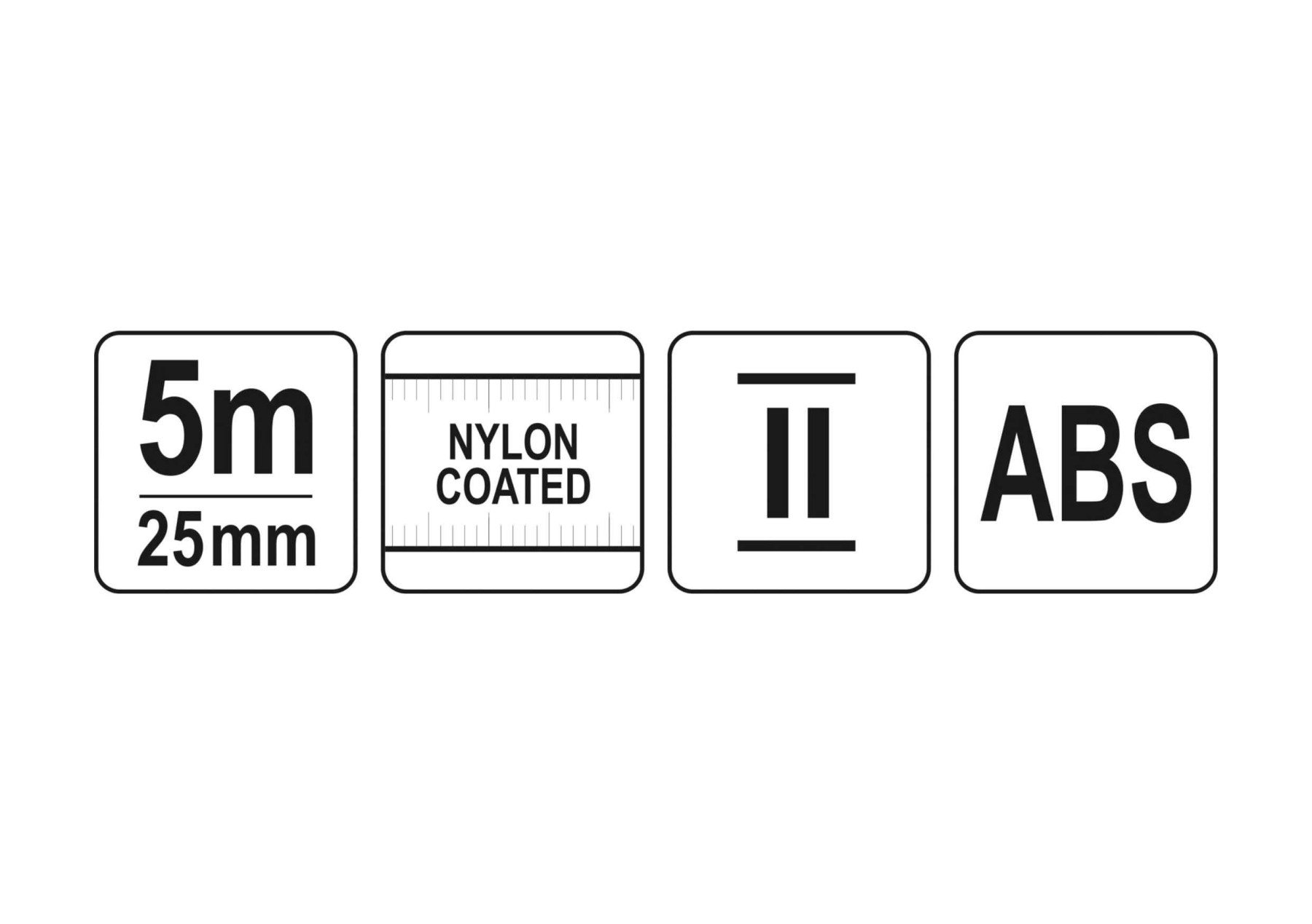 YATO Рулетка : L= 5 м x 25 мм, з сталевою стрічкою, нейлоновим покриттям