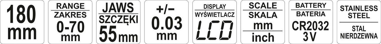 Штангенциркуль електронний для гальмівних дисків YATO YT-72093 180 мм