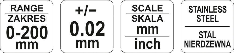 YATO Штангенциркуль : L= 200 мм, точність ± 0,02 мм [300]