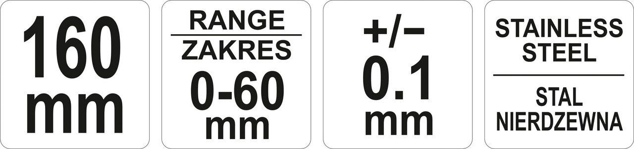 YATO Штангенциркуль для гальмівних дисків : l= 160 мм, з діап.- 0-60 мм, точн ± 0,1 мм, губки-55мм