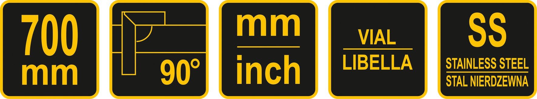 VOREL Кутник з рівнем : L= 700 мм/26.5", метрична і дюймова шкали, алюміній + сталь | 18382