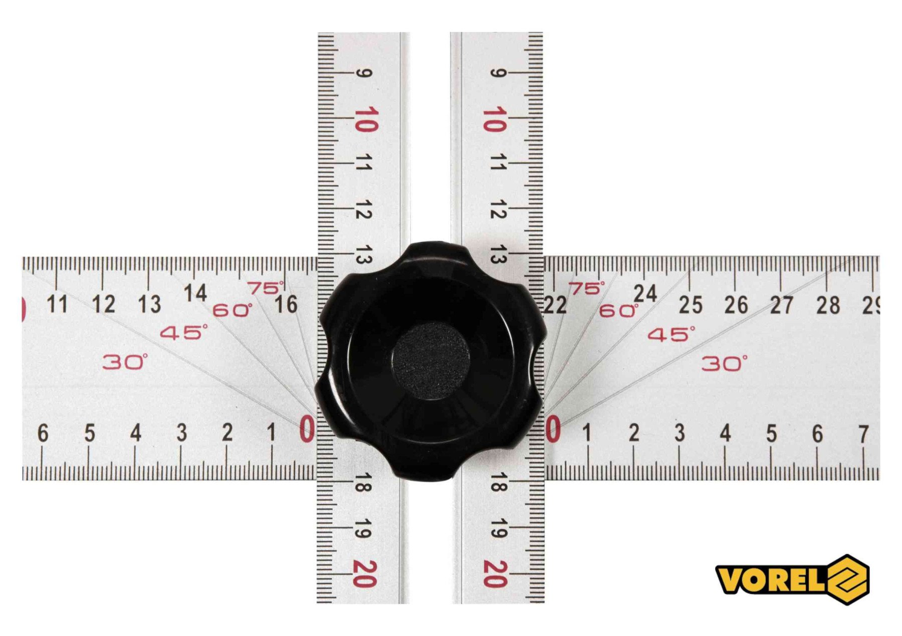 VOREL Кутник алюмінієвий регулювальний : 600 х 320 мм, з розмітками кутів 30-75° | 18374