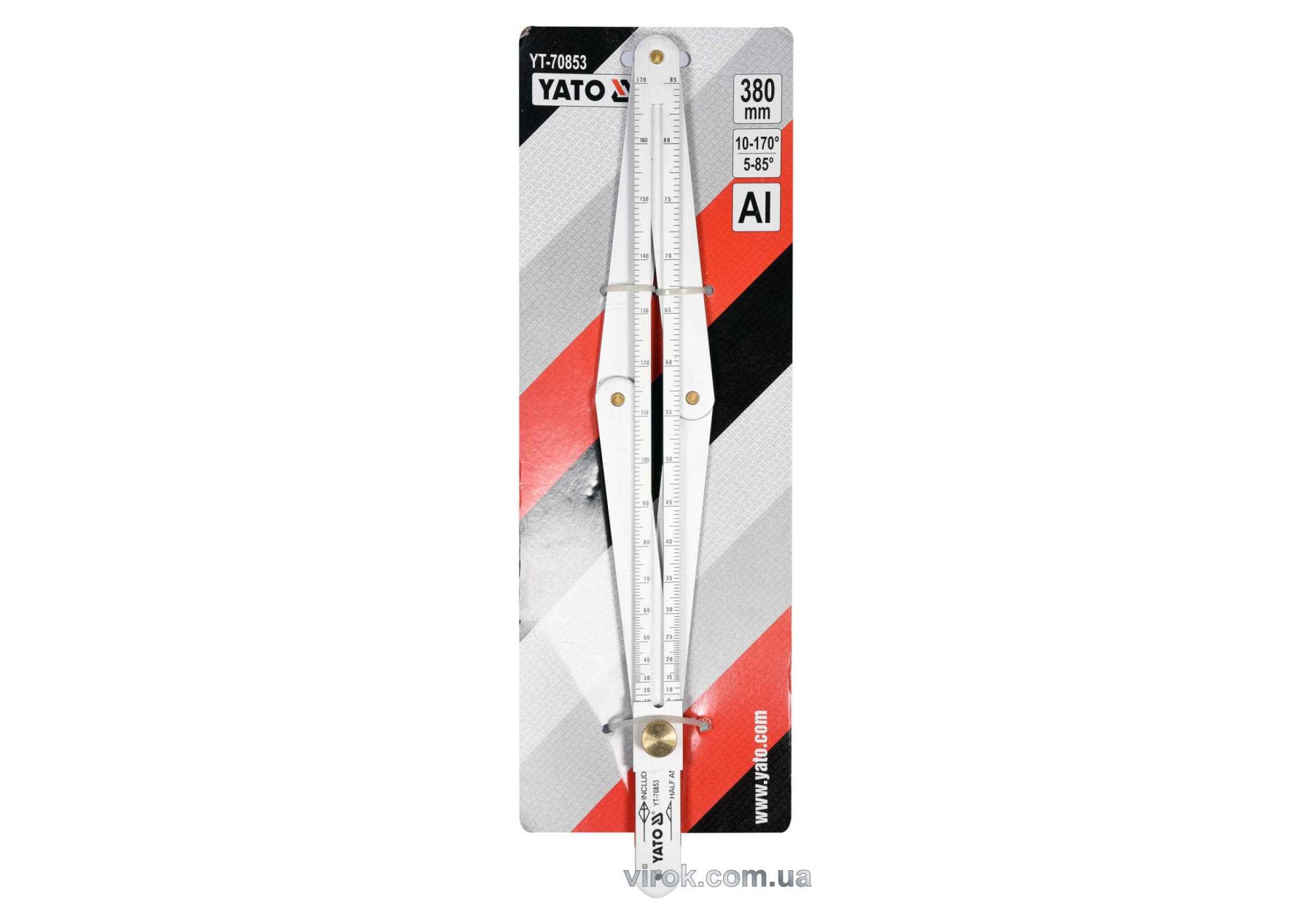 Кутомір алюмінієвий на шарнірах YATO зовнішній/внутрішній діапазони- 10-170°/5-85° 380 мм
