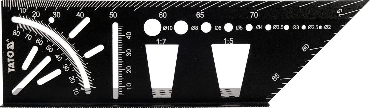 YATO Кутник алюмінієвий стереометричний 3D 150х 70х 215 мм з транспортиром і шаблонами отворів