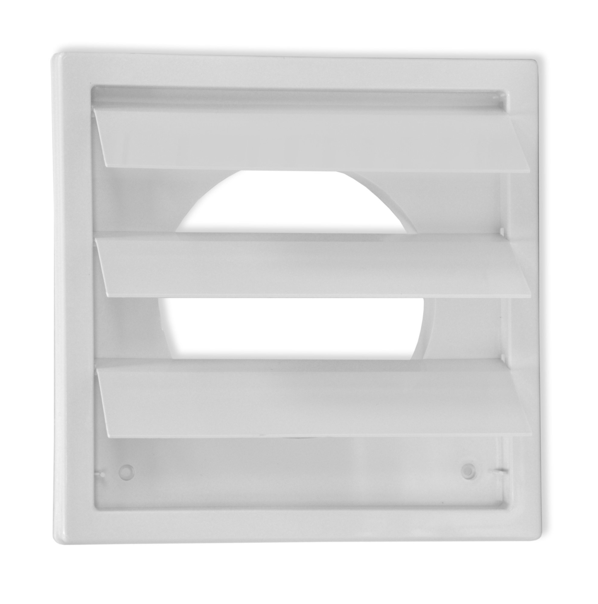 Решетка прямоугольная с круглым фланцем предназначена для декоративного оформления выходов приточных или вытяжных вентиляционных систем бытовых, общественных и промышленных зданий. Предполагает наружный монтаж на стену. Назначение - функциональное завершение вентиляционной системы, выход отработанного воздуха наружу. Гравитационные жалюзи выполняют роль обратного клапана, предотвращая возникновение обратной тяги. Монтируется с круглыми воздуховодами с помощью фланца. Решетка изготавливается из высококачественного ABS пластика. К месту монтажа крепится с помощью шурупов. -