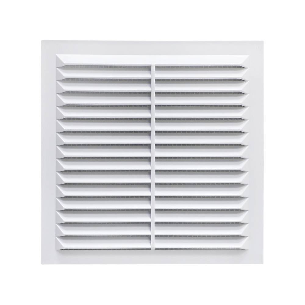 Решітка прямокутна без фланця призначена для декоративного оформлення виходів приточних або витяжних вентиляційних систем побутових приміщень і промислових будівель. Решітка вентиляційна має нахилені жалюзі для збільшення пропускної здатності повітря в каналі. Москітна сітка перешкоджає осипанню дрібного сміття та потраплянню комах з вентиляційної системи до приміщення. Для підтримки ефективної циркуляції повітря рекомендується періодично чистити сітку від пилу та бруду. Решітка призначена для настінного або стельового монтажу за допомогою клею або герметику. Виготовляється з високоякісного ABS пластику, стійкого до впливу ультрафіолету, перепадів температури та вологи.