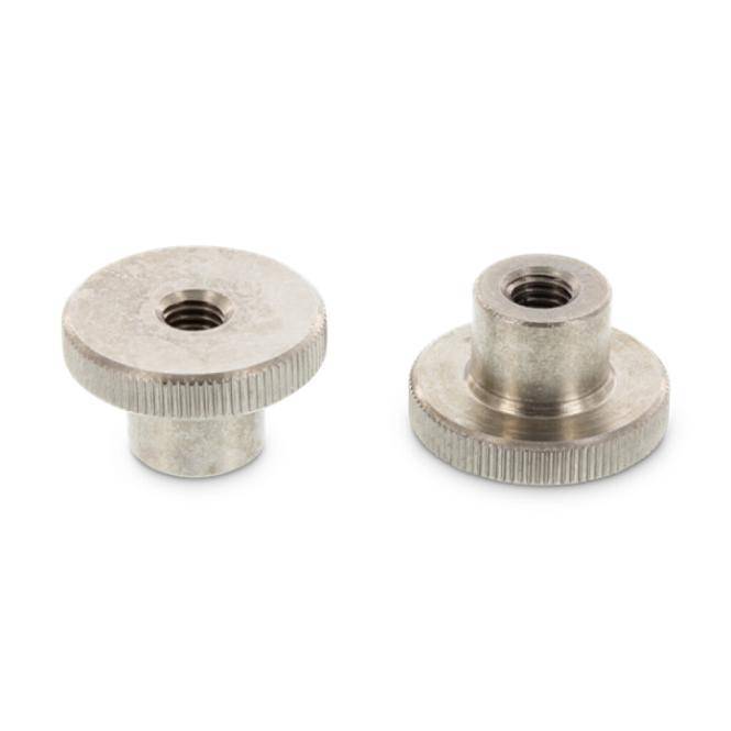 Стандарт DIN 466 Тип Кругла рифлена гайка Матеріал Нержавіюча сталь AISI 303 Поверхня Без покриття (корозійна стійкість завдяки AISI 303) Різьба Метрична, права Форма Кругла з накаткою (рифленням) Розміри Від M3 до M12
