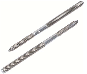 Шуруп-шпилька сантехническая имеет с одной стороны шурупную резьбу, с другой стороны метрическую резьбу. Сантехнические шпильки применяются для крепления хомутов трубопроводов и различного сантехнического оборудования. Шпильки устанавливаются в бетонное или кирпичное основание с помощью дюбелей или вворачиваются в деревянные конструкции.