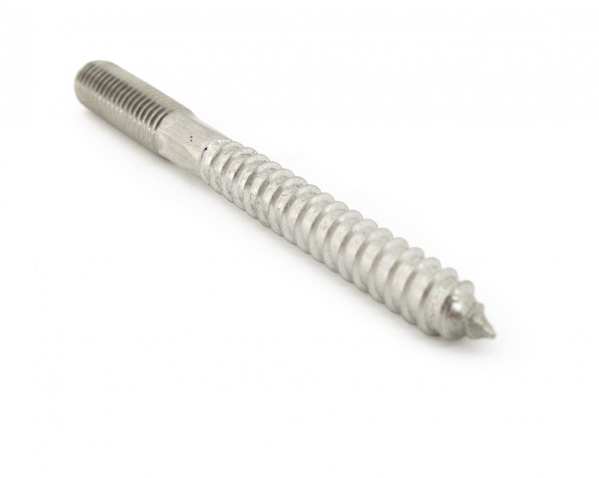 Шуруп-шпилька сантехническая имеет с одной стороны шурупную резьбу, с другой стороны метрическую резьбу. Сантехнические шпильки применяются для крепления хомутов трубопроводов и различного сантехнического оборудования. Шпильки устанавливаются в бетонное или кирпичное основание с помощью дюбелей или вворачиваются в деревянные конструкции.