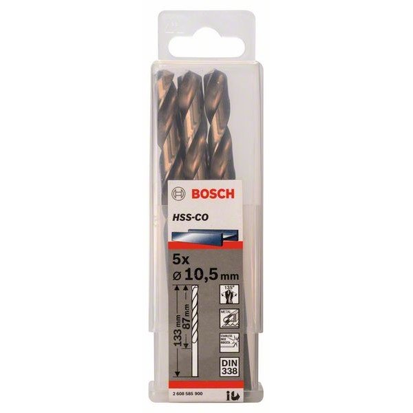 Параметры Диаметр, мм 10.5 мм - Загальна довжина 133 мм Оброблюваний матеріал по металу, по листовому металу Стандарти DIN 338 Робоча довжина 87 мм Хвостовик циліндричний Материал сталь HSS-Co -