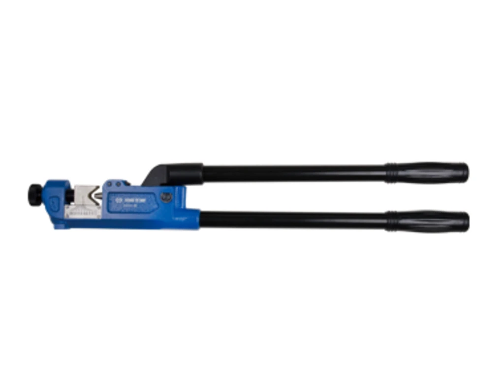 Опресування неізольованих наконечників перерізом 10, 16, 25, 35, 50, 70, 95, 120, 150 кв.мм Галузь застосування Станції технічного обслуговування автомобілів (СТО), автосервіси, автомайстерні, промисловість, виробництво, побутове використання. Особливості • Індустріальний тип • Важільна конструкція • Регулювальний гвинт • Ізольовані рукоятки Профіль: спеціальний Матеріали: інструментальна сталь, конструкційна сталь Упаковка: коробка картон Габарити: 655 х 100 х 45 мм Вага: 3,9 кг
