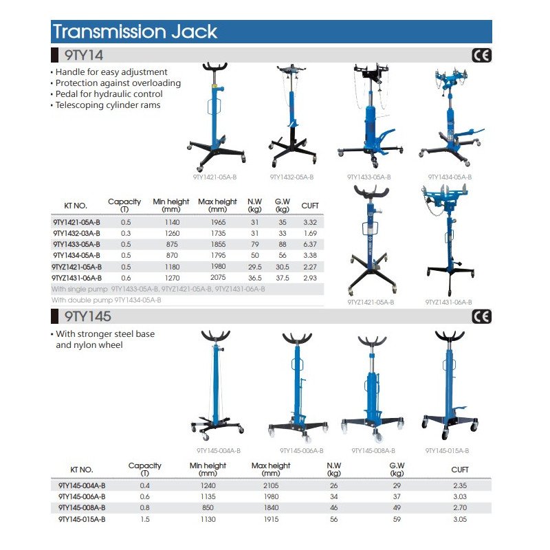 KING TONY Стійка-підіймач трансмісійна гідравлічна вантажопідйомність 0,5 т (H: 1135-1950 MM) | 9TYZ1421-05A-B