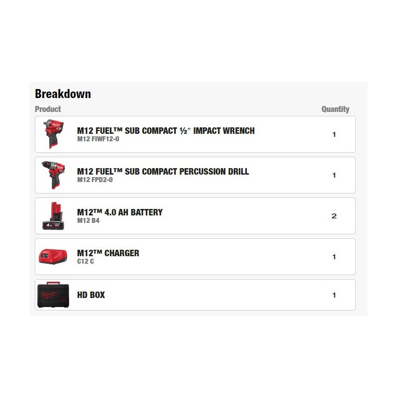 Набор аккумуляторных инструментов Milwaukee M12FPP2H2-402X, 4933492512