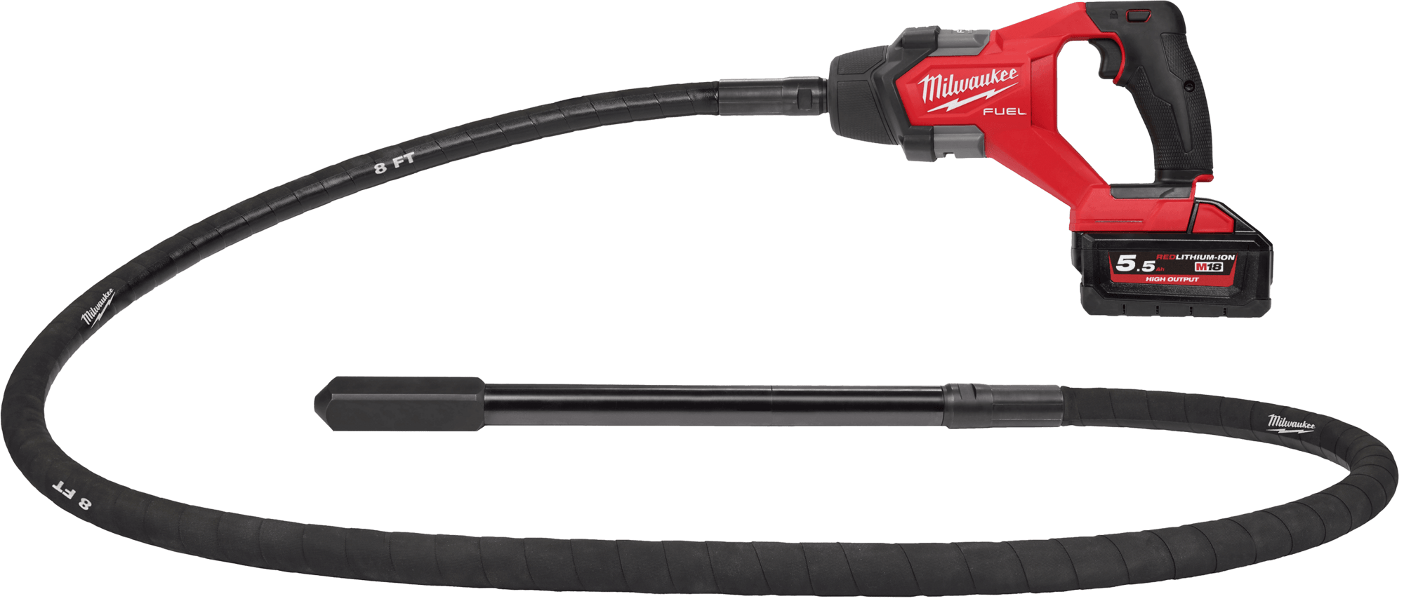 Може ущільнити цілий міксер бетону (до 8 м³) на одному заряді акумулятора M18™ HIGH OUTPUT™ 5.5 Ач