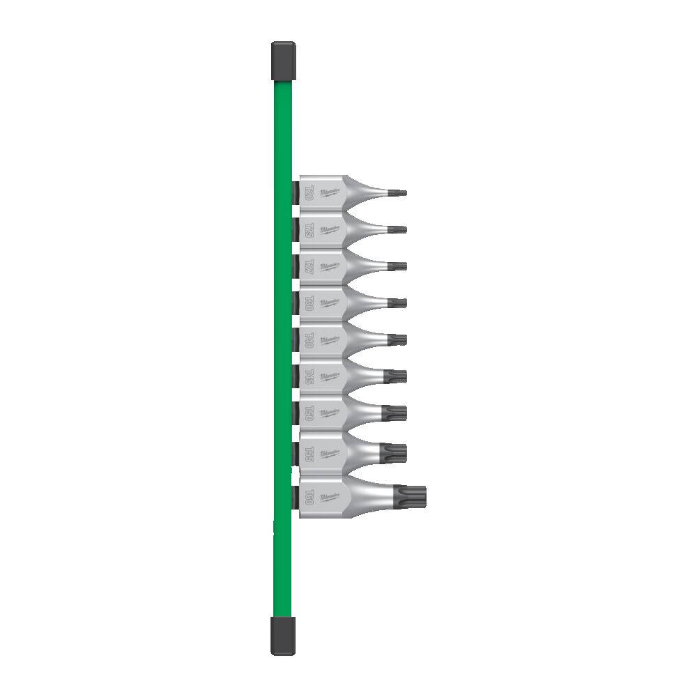 Набір головок торцевих хромованих ½” MILWAUKEE, з бітою Torx (Т20-Т60) на планці, (9шт).