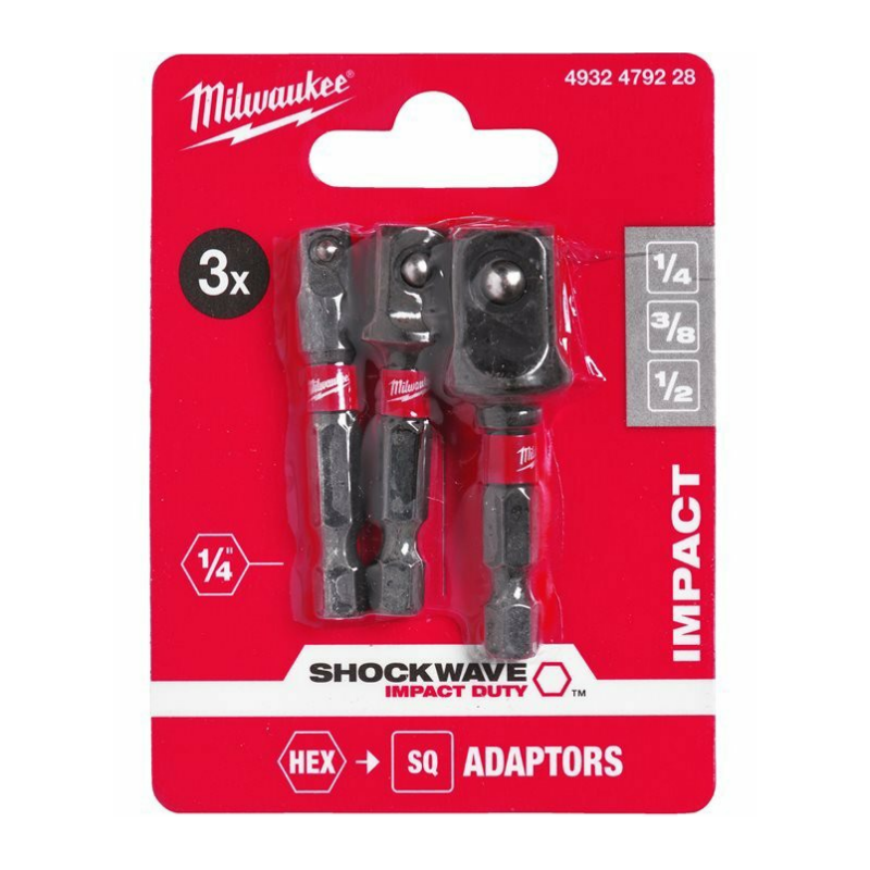 Набор переходников ShW MILWAUKEE, з 1/4'' Hex на квадрат (1/4", 3/8", 1/2")