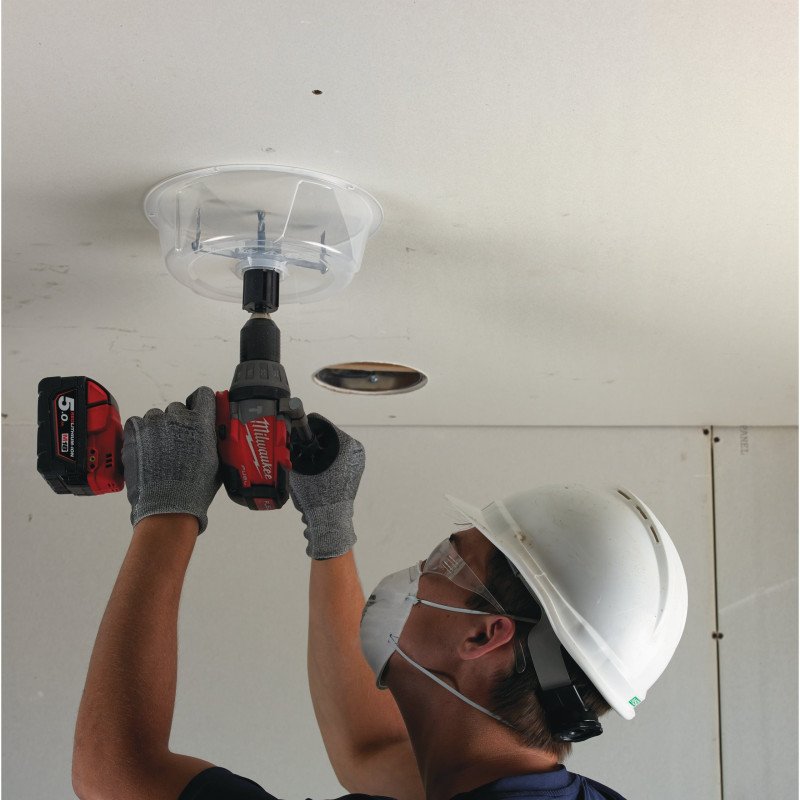 Коронка для свердління м'яких матеріалів 51-178мм (балеринка) (1 шт) Для отворів великого діаметру під вентиляцію, труби кондиціювання, світильники і стельові колонки. Збір пилу та шламу на 100% при роботі в стелю, над головою. Діапазон регулювання від 51 мм до 178 мм із кроком 6.4 мм. Лазерне маркування для встановлення потрібного діаметра від 51 до 178 мм. Підходить для використання з гіпсокартоном (товщиною до 25 мм) та стельових плит. Не підходить для використання по плитах OSB. Тип Коронки розсувні (балеринки) Діаметр (мм) 51-178 з кроком 6.4 мм Кількість (шт) 1 Тип хвостовика 1/4" Hex Гіпсокартон так (до 25 мм)