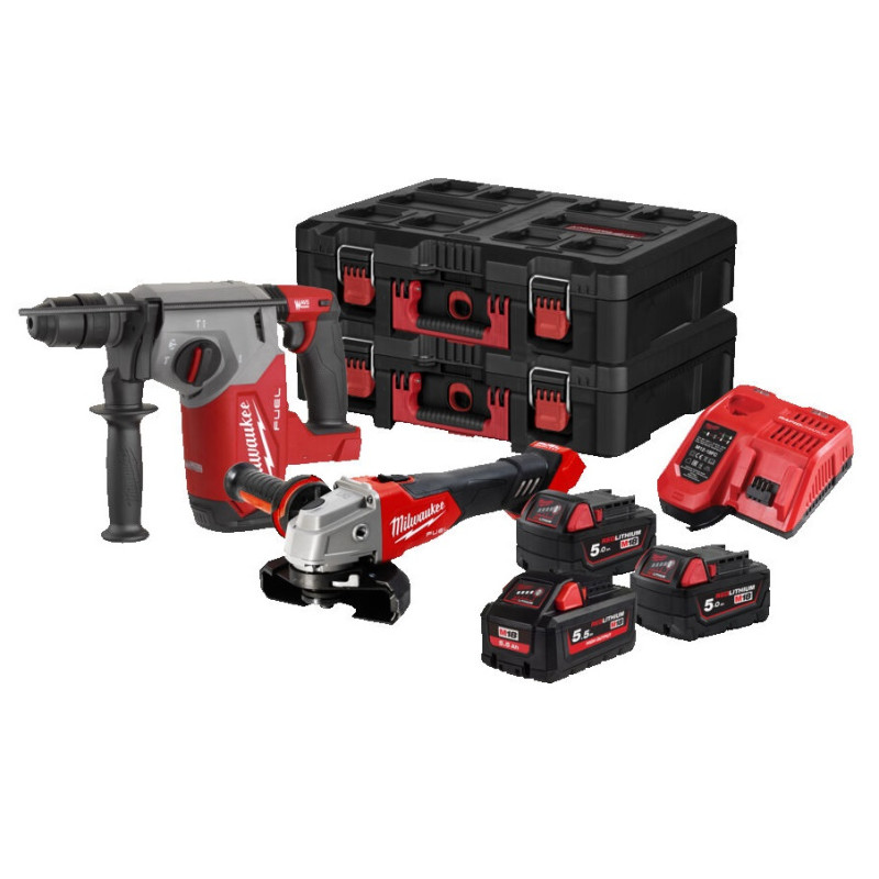 Kit Power Pack Milwaukee M18 FPP2AJ2-502X , набор аккумуляторных инструментов включает в себя два инструмента, идеально подходящих для тяжелых условий эксплуатации: инструмент для резки дюбелей M18 BLHX и импульсный шуруповерт M18 FIW2F12. В комплект входят два аккумулятора 18V 5ah, быстрое зарядное устройство и 2 жестких кейса.