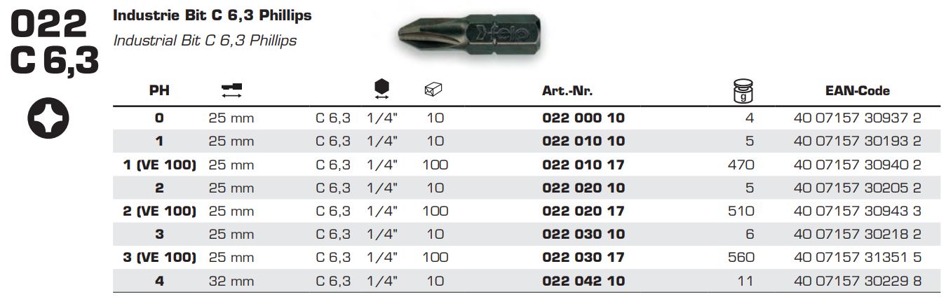 Біта FELO PH2х25 мм INDUSTRIAL упаковано по 100 шт (02202017)
