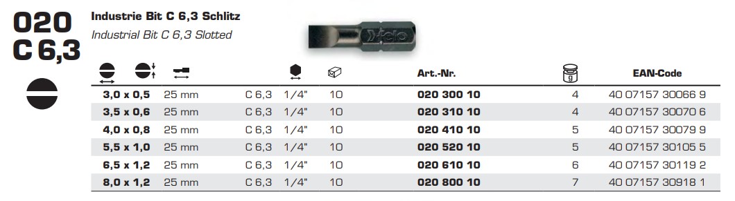 Біта FELO шліц SL 3,0х0,5х25 мм INDUSTRIAL (02030010)