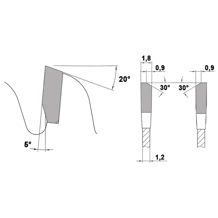 - Кут атаки і форма зуба відповідають оброблюваному матеріалу та інструменту,