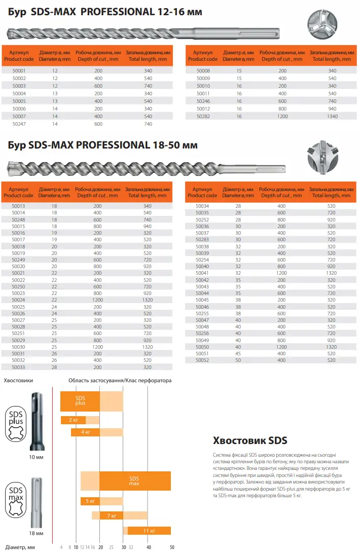 - Утоплена твердосплавна голівка для забезпечення максимальної міцності при потраплянні в арматуру і енергійного просування в бетоні,