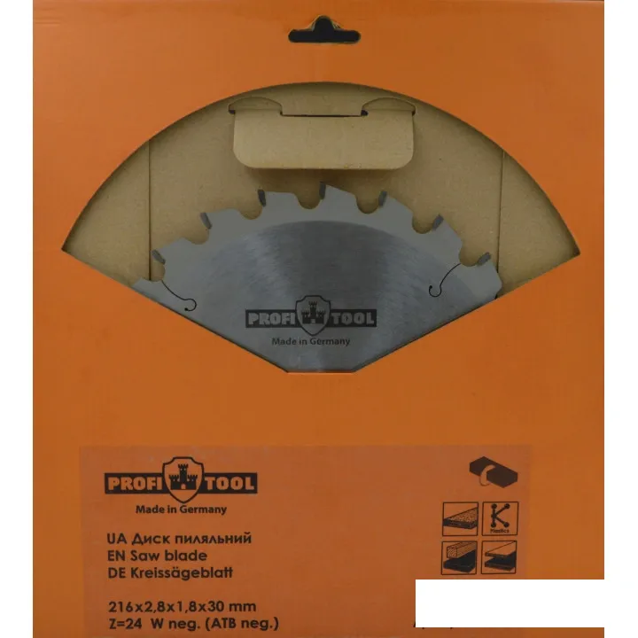 Диск пильный по дереву 216х2.8х1.8х30 мм, Z=24, форма зуба Wneg (ATBneg), поперечный рез PROFITOOL ( ПРОФИТУЛ )